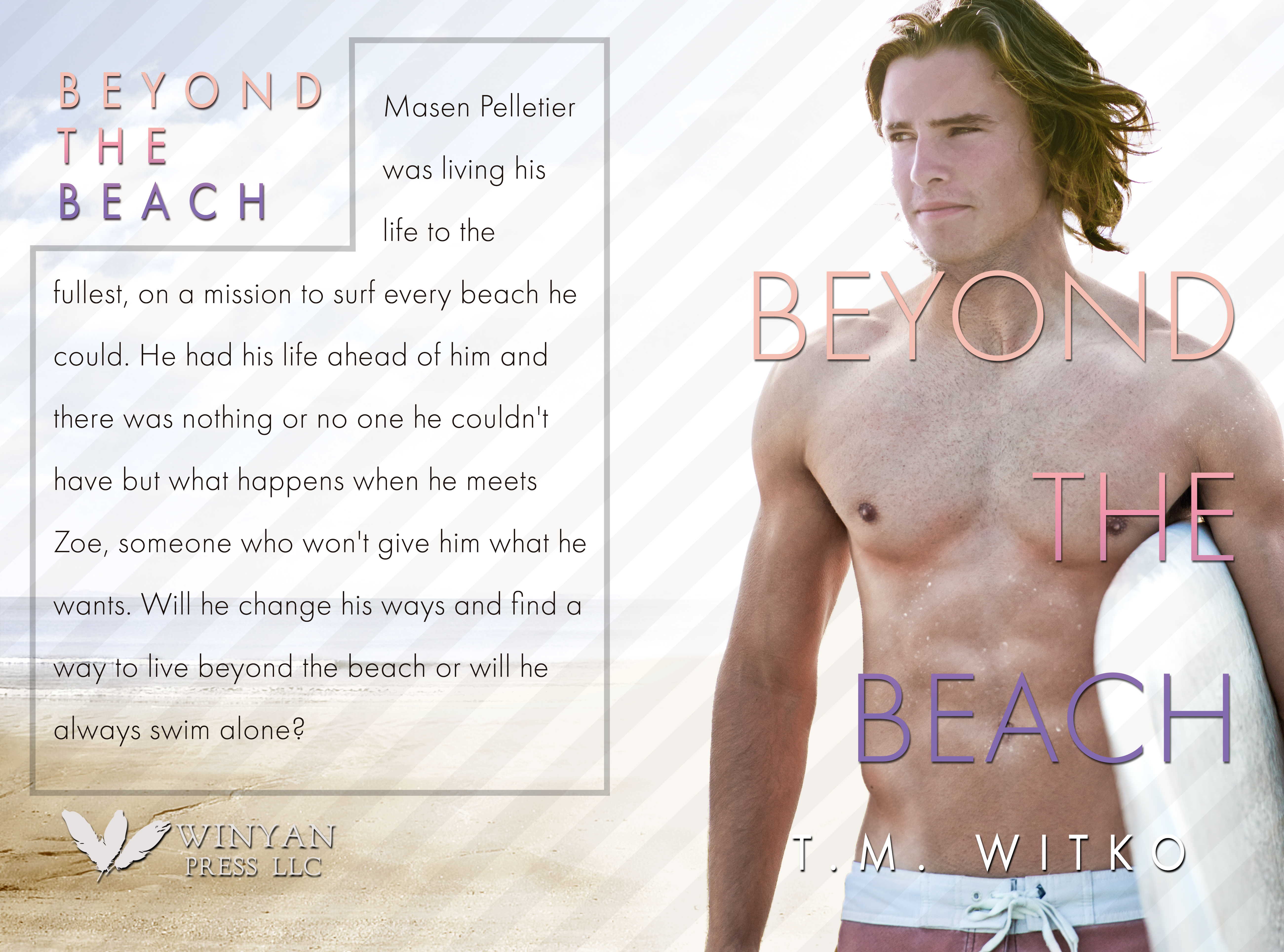 Masen Pelletier was living his life to the fullest, on a mission to surf every beach he could. He had his life ahead of him and there was nothing or no one he couldn’t have but what happens when he meets Zoe, someone who makes him work for it. Will he change who he is and find a way to live beyond the beach or will he always swim alone?